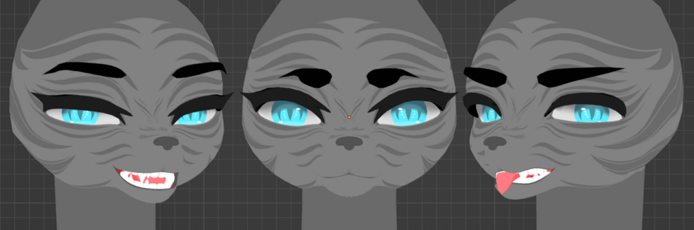 it comes with 1 texture, quite a few shape keys, no pre made faces