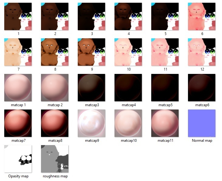 Androgyny Head, head from scratch with a cute button mesh nose, Has shape keys for speach in VRChat and pre set facial expressions, dose not have normal 'flat' teeth. Textures from scratch hand done shading a few different texture shades as well as some Matcaps.